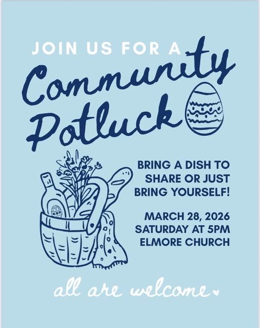 The Elmore United Methodist Church forms disciples of Jesus Christ who, empowered by the Holy Spirit, love boldly, serve joyfully, and lead courageously in our local communities and worldwide connections.